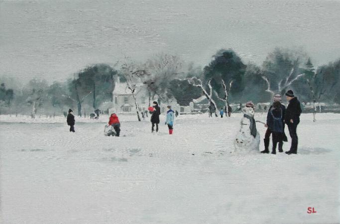 Snow on the Common, oil on canvas 30 x 20 cm, sold